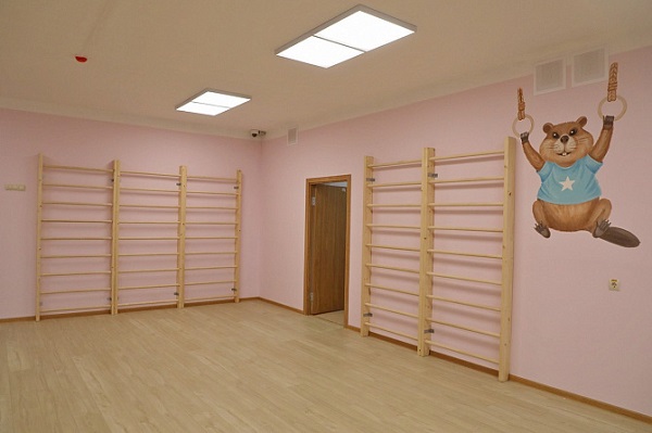 Двухэтажный детский сад рассчитан на 6 групп. Здесь высажено 18 декоративных яблонь и 11 мелколиственных лип. Территорию также украшают гортензии, спиреи и дёрен.