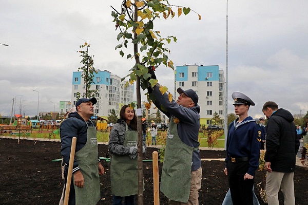 Мэр Уфы Ратмир Мавлиев принял участие в акции «Зеленая Башкирия», которая стартовала сегодня в Уфе. Вместе с родителями будущих воспитанников нового детского сада в жилом районе «Сосны» они посадили на его территории тематическую аллею «Яблоневый цвет». В акции также приняли участие заместители главы Администрации Гуллярия Ялчикаева и Агарагим Кагиргаджиев.