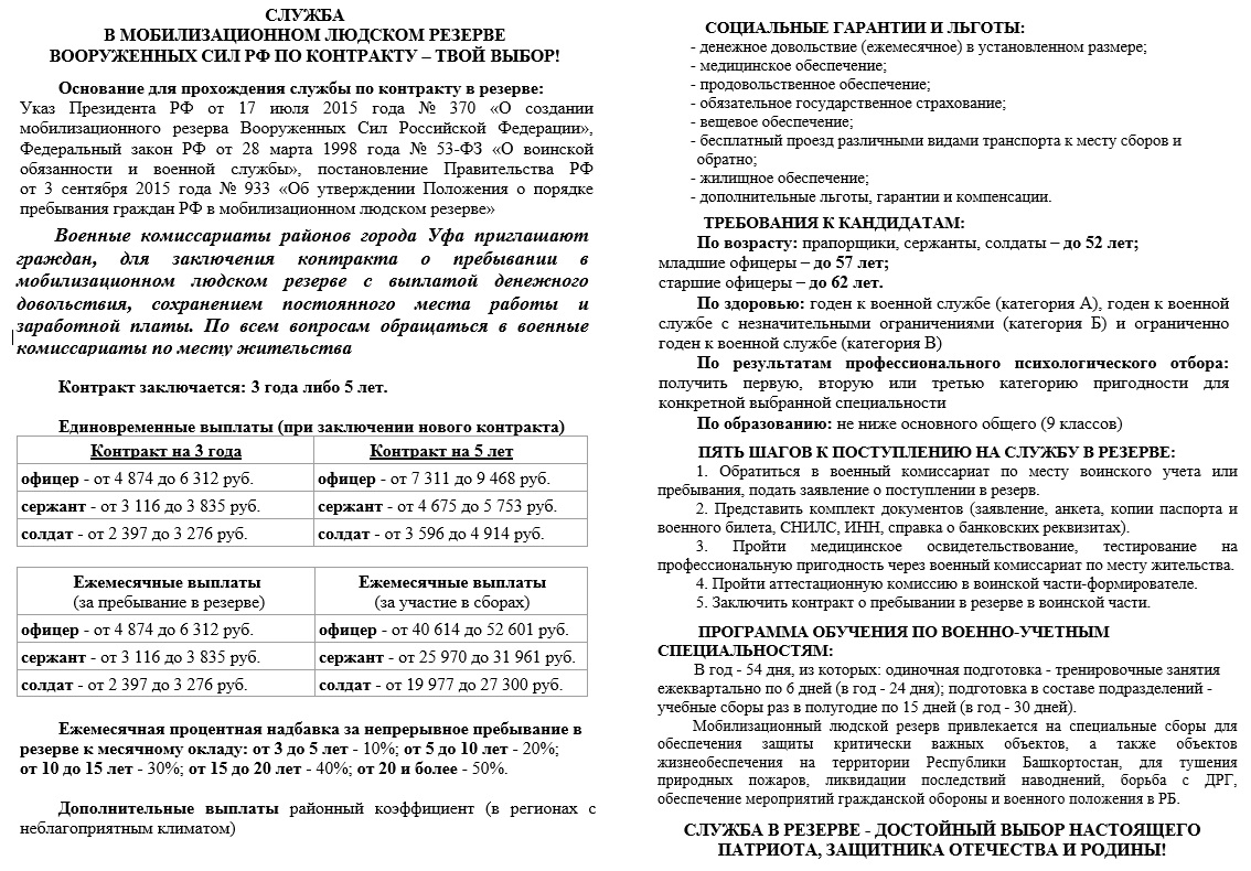 СЛУЖБА В МОБИЛИЗАЦИОННОМ ЛЮДСКОМ РЕЗЕРВЕ ВООРУЖЕННЫХ СИЛ РФ ПО КОНТРАКТУ – ТВОЙ ВЫБОР!