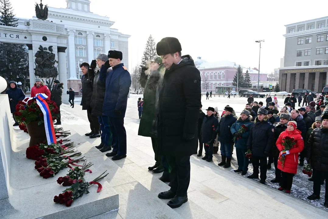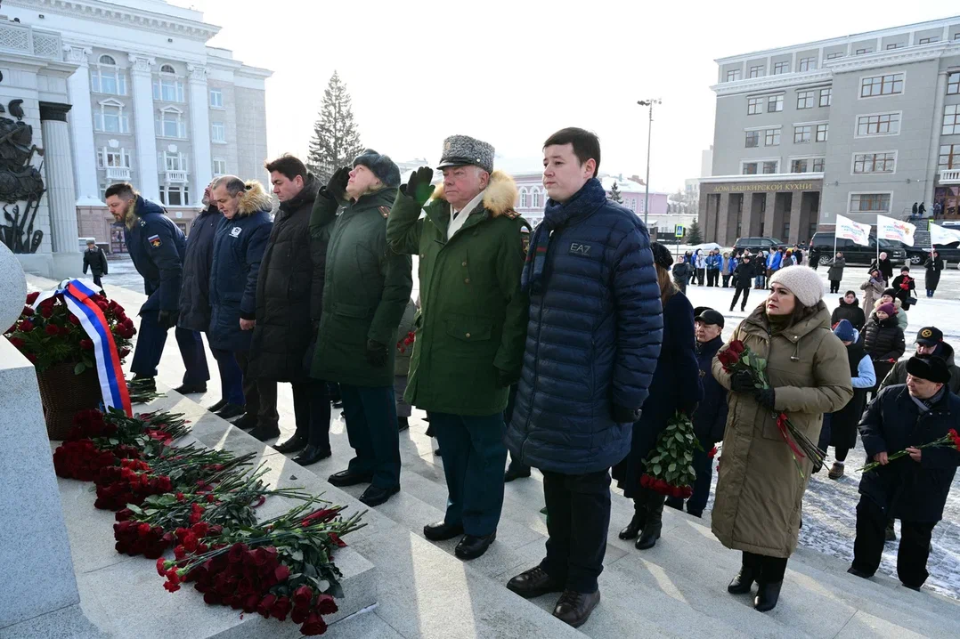 Память героев Отечества пришли почтить Председатель Госсобрания – Курултая Республики Башкортостан Константин Толкачев, Премьер-министр Правительства РБ Андрей Назаров, председатель городского Совета Уфы Марат Васимов, руководители министерств и ведомств, ветераны Вооруженных сил, представители общественных организаций, жители города.
